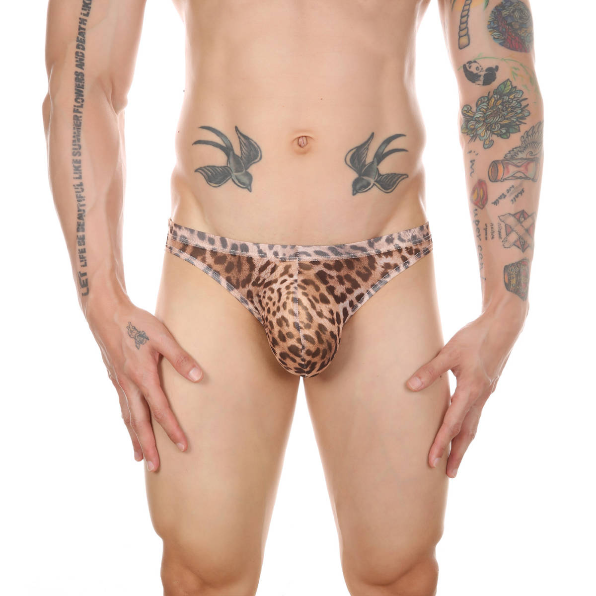 - ★メンズ セクシー シースルー ヒョウ柄 メッシュ ブリーフビキニパンツ★73-6