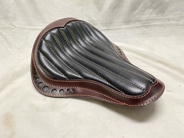 > Lucky Custom Leather製 サドルシート イタリアンレザー ダークブラウン×ブラック ショベル ツインカム ブレイクアウト ミルウォーキー8
