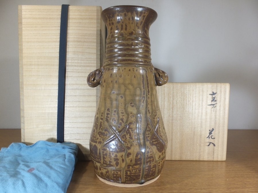 - 【真作保証】 12代 高取八山 自作 高取花入 遠州七窯 高取宗家 高取焼 コレクター放出品 (高取静山) 茶道具 福岡県