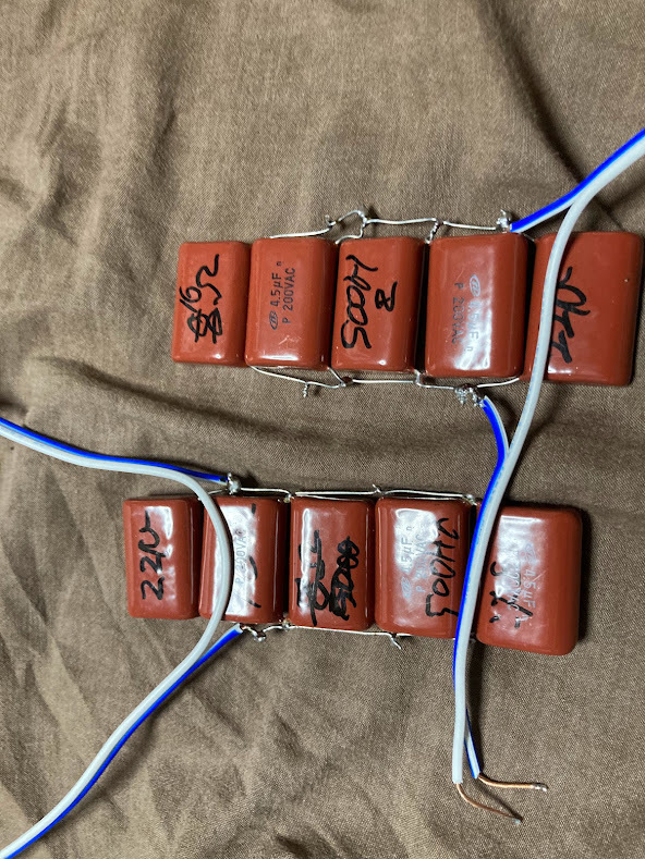 > 高域ドライバー保護用コンデンサ 8オームドライバー 1000Hz 16オーム 500Hz 以上用 ステレオペア