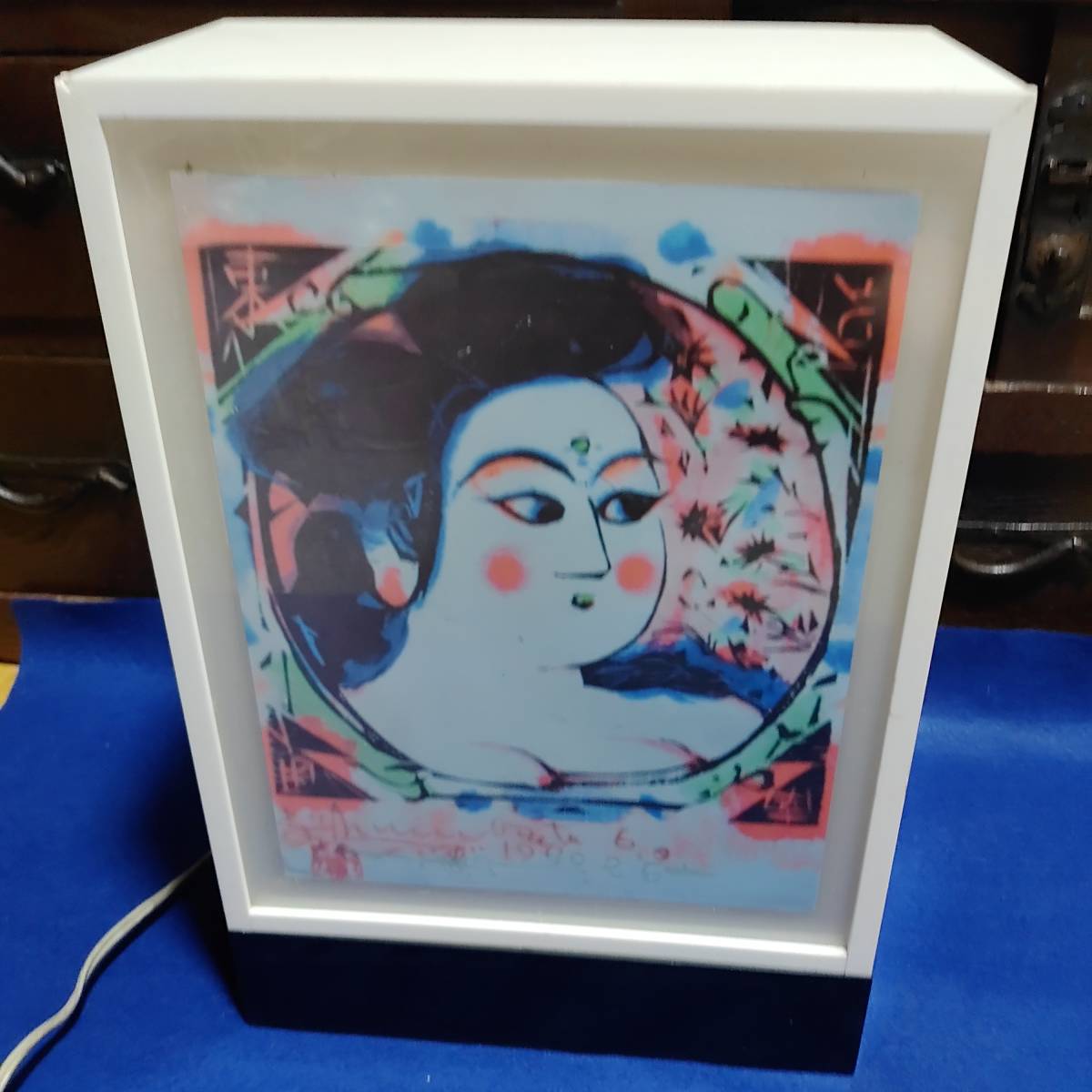 - (鳥羽庵)完全売り切り品美術品店 室内電気看板スタンド (棟方志功印刷絵)アクリル板模写絵