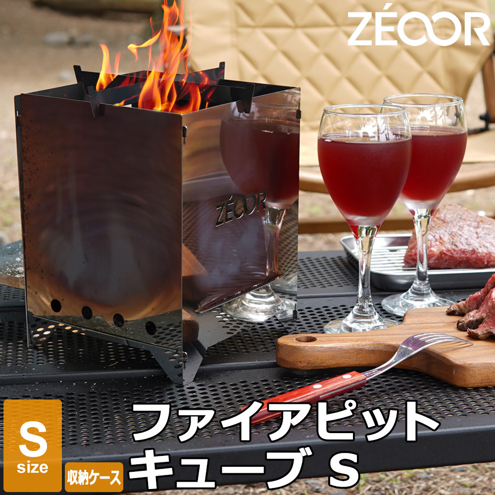 > ゼオール 焚き火台 ソロ 軽量 コンパクト ソロキャンプ ファイアピットキューブS バーベキューコンロ 焚火台 収納ケース付き BG10-31