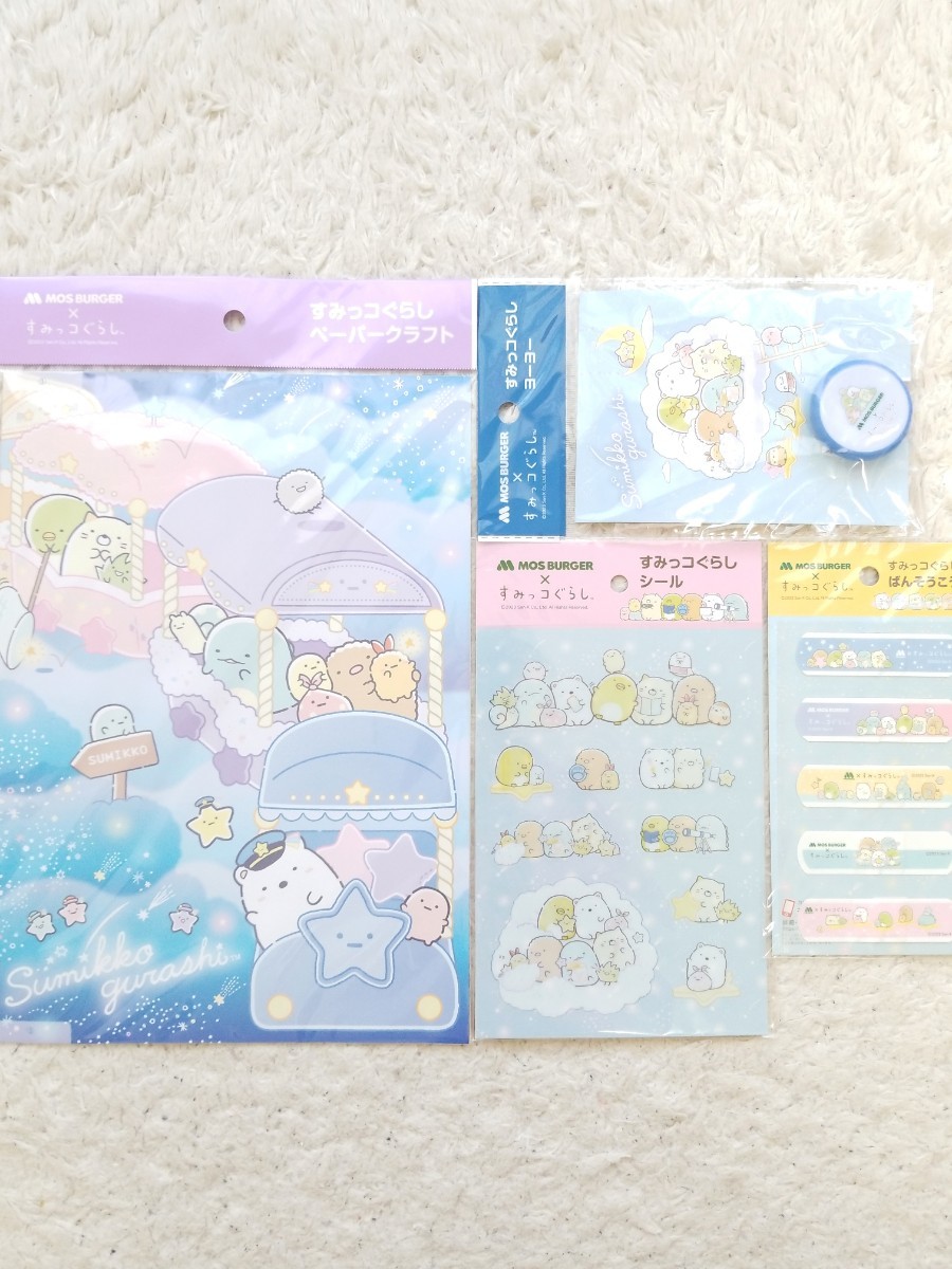 > ☆新品未開封モスバーガー×すみっコぐらしコラボ限定おもちゃ全4種/ペーパークラフト/ヨーヨー/シール/ばんそうこう/非売品フルコンプ☆