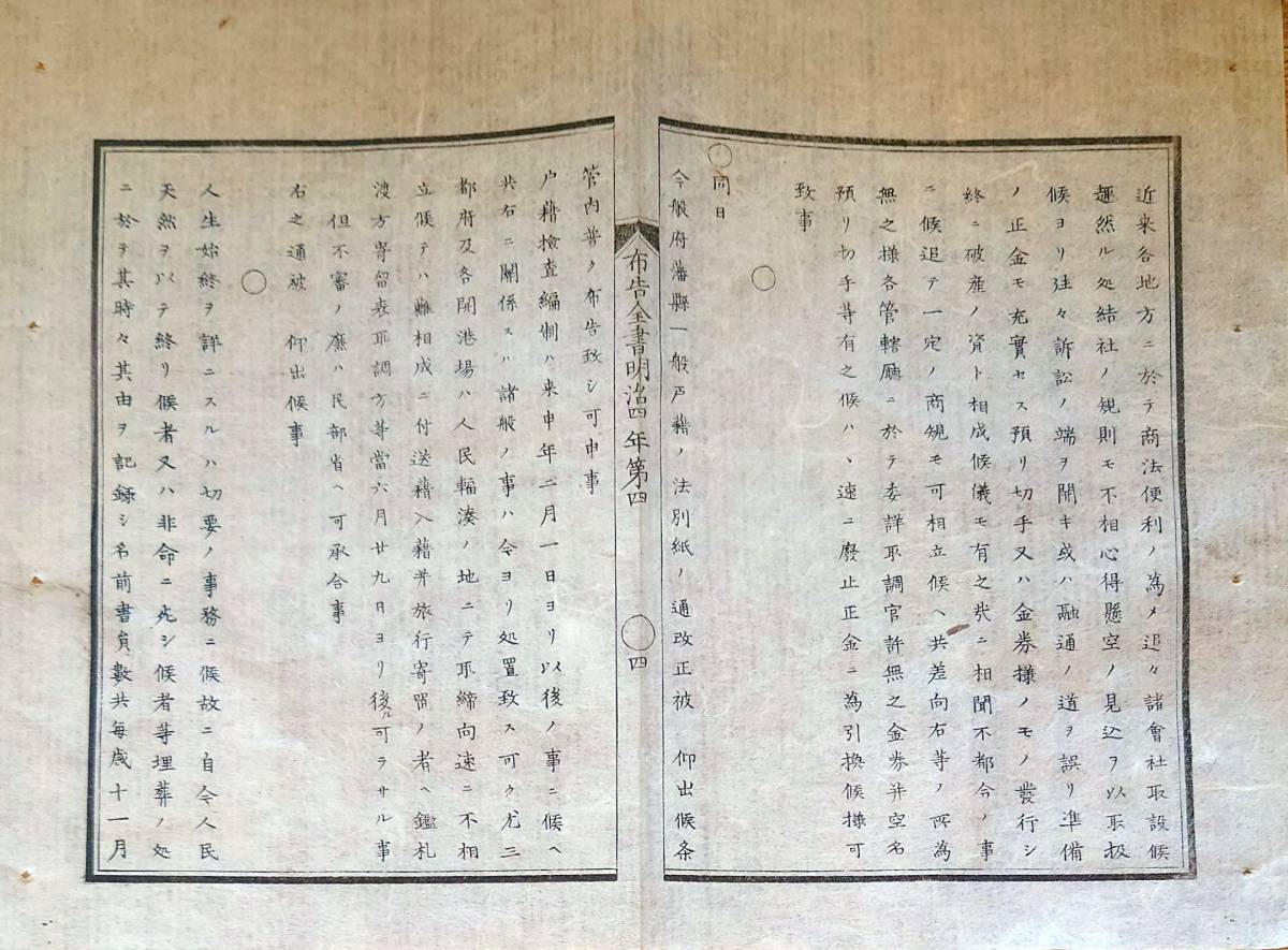 - f23080220〇明治布告布達 布告全書 府藩県 一般戸籍改正 第1則~第33則 明治4年〇和本古書古文書