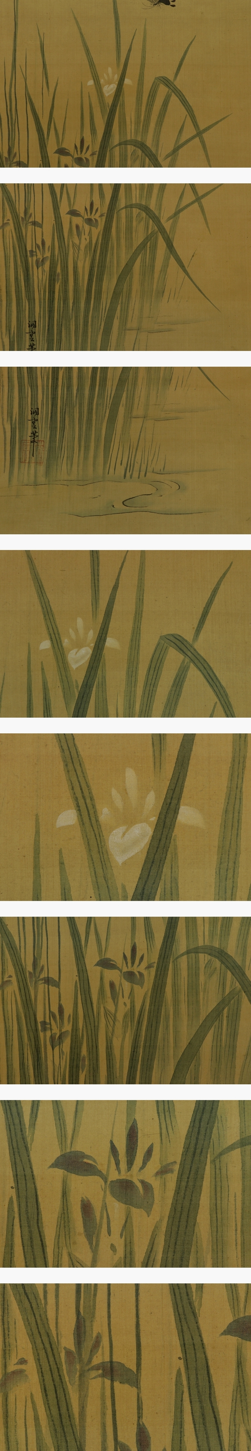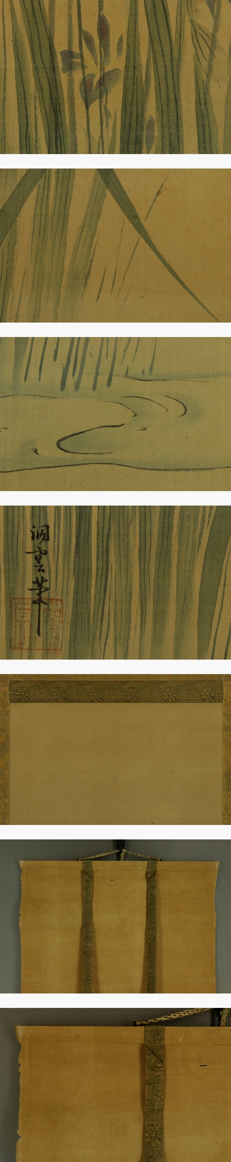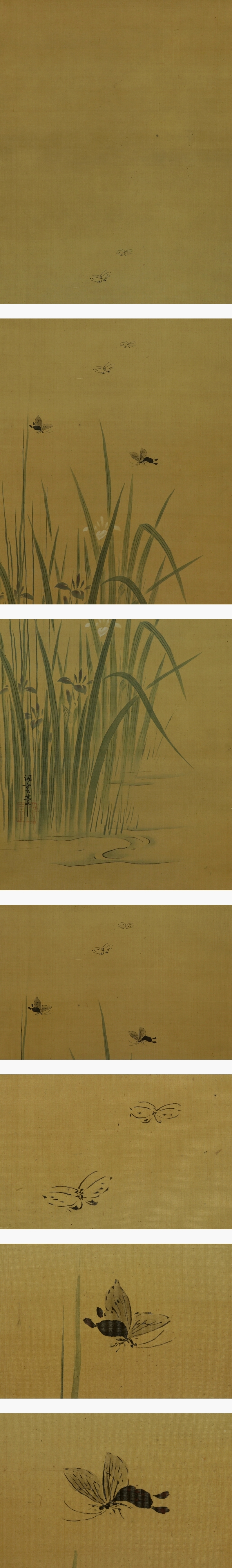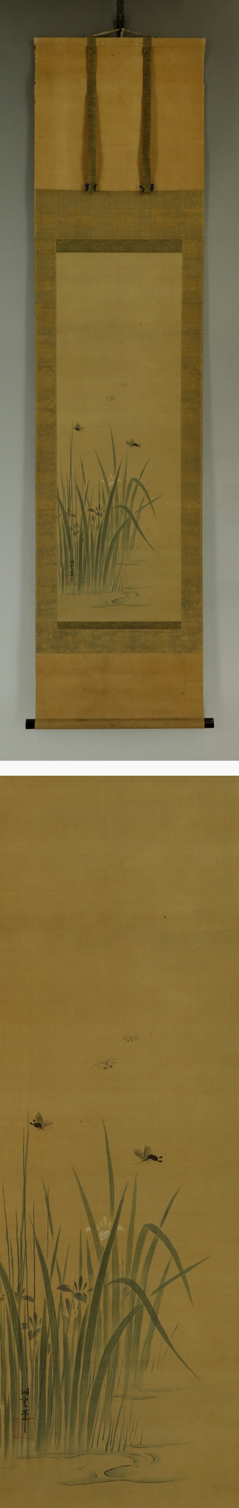 - 【真作】狩野洞雲【杜若蝶図】◆絹本◆合箱◆掛軸 t04061
