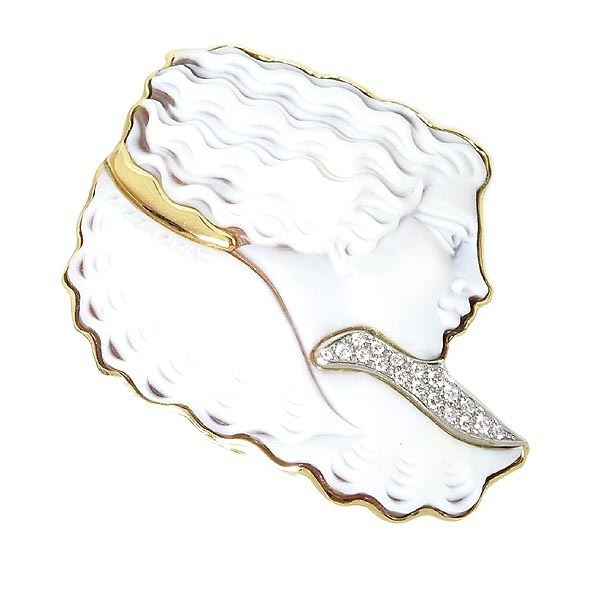 - K18 パトリシアパルラッティ カメオブローチ兼ペンダント D0.24ct 17.8g