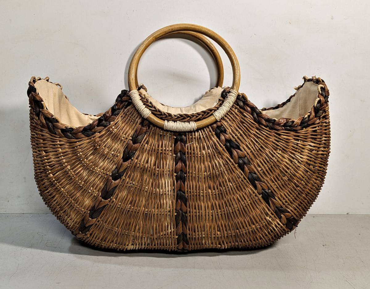 - ★天然素材 竹編みバッグ かごバック 竹細工 中布付き レディース 浴衣にも★状態良★