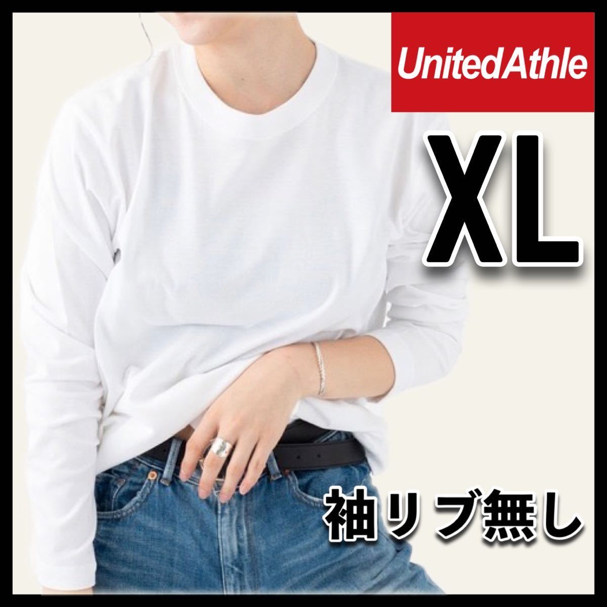 - 新品未使用 ユナイテッドアスレ 5.6oz 無地 袖リブ無し 長袖Tシャツ ロンT 白 ホワイト XLサイズ United Athle ユニセックス