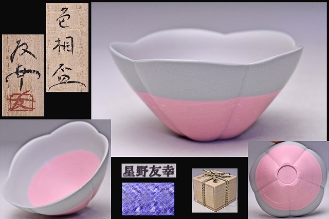 > 星野友幸 ★ 色相 ぐい呑 ★ 共箱 共布 栞 ★ 師: 猪飼祐一 ★ 花弁の造形にピンクが可憐な逸品 ★ 酒器 ★