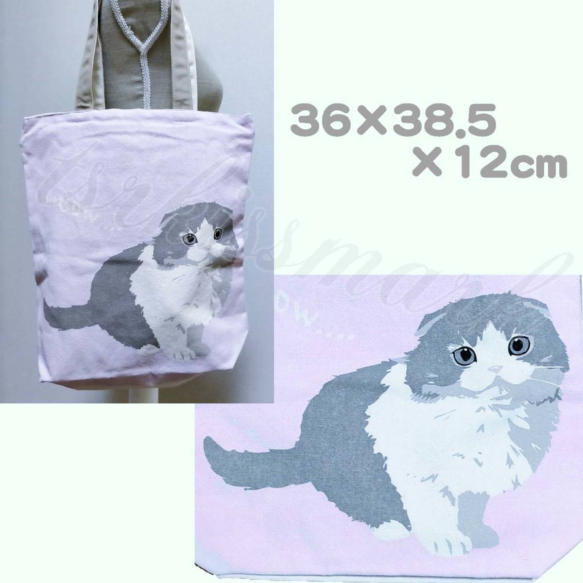 - 【スコティッシュフォールド】トートバッグ ファスナー付 マチ付 ショルダーバッグ 帆布 キャンバストート ピンク