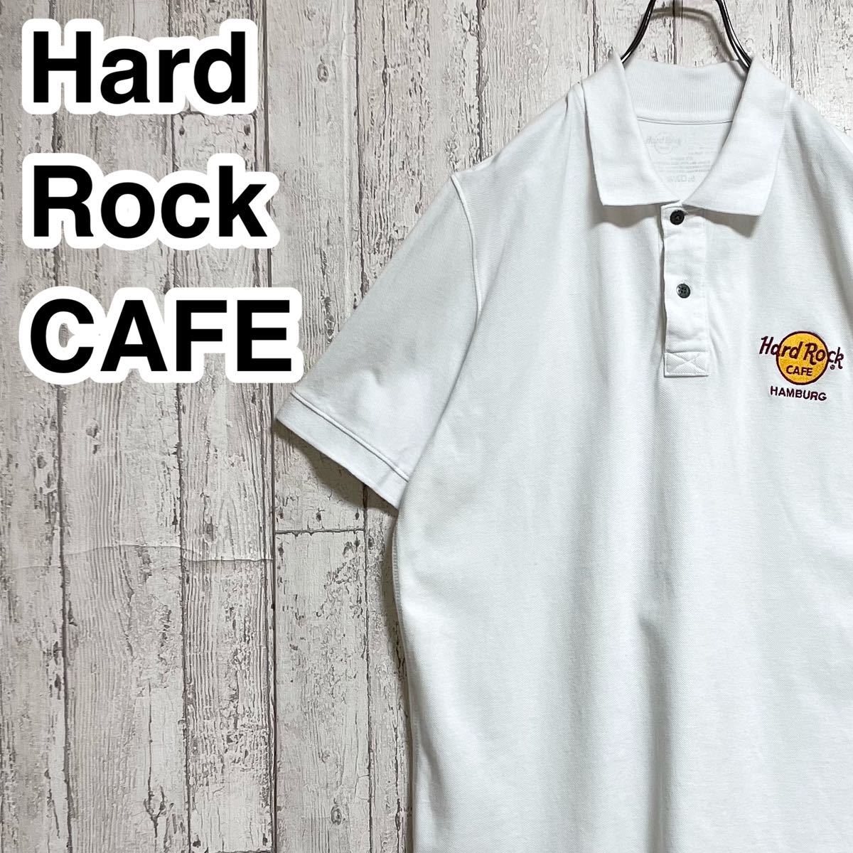 - 【人気アイテム】Hard Rock CAFE HAMBURG ハードロックカフェ ハンブルク 半袖 ポロシャツ ホワイト 刺繍ロゴ 23-219