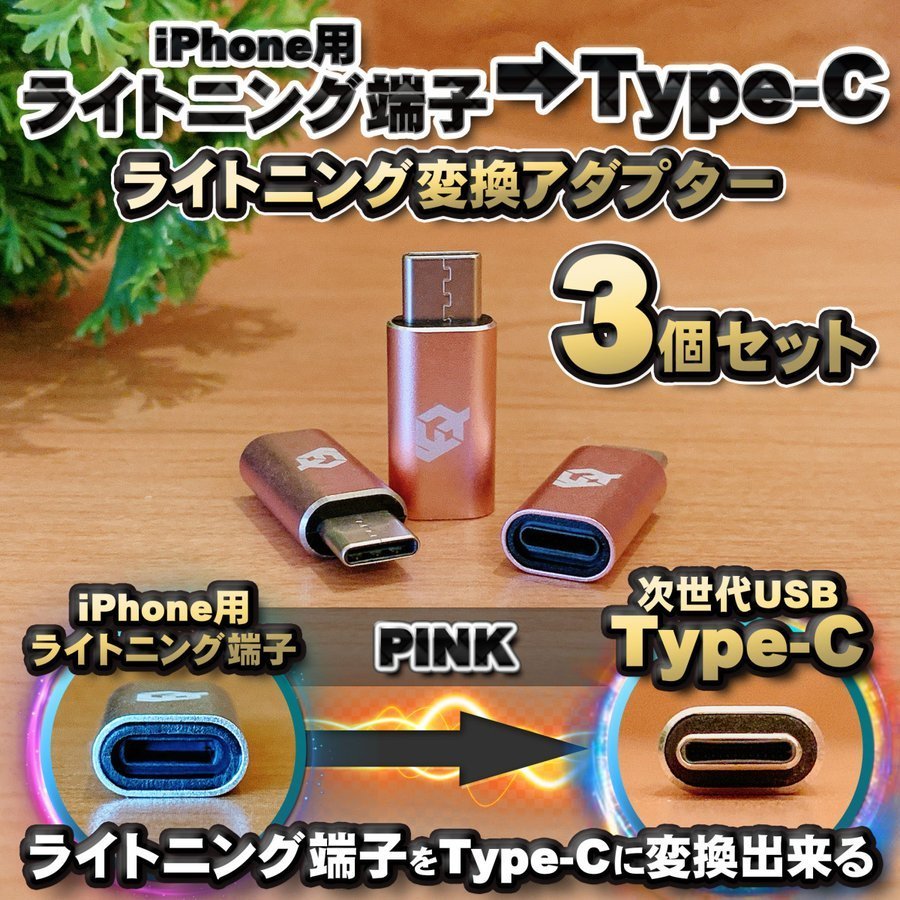 - iPhone用 ライトニングケーブル → USB Type C 端子 に変換する アダプター x3 【ピンク】