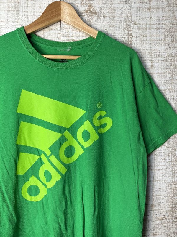 > ☆US古着 adidas アディダス ロゴ プリント Tシャツ グリーン緑【L】コットン ◆3956◆
