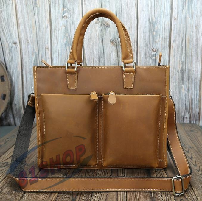 - 「81SHOP」職人手作り ヌメ革 ハンドメイド メンズバッグ 本革 ビジネスバッグ サイズ対応 14ノートパソコン入れる可能 通勤