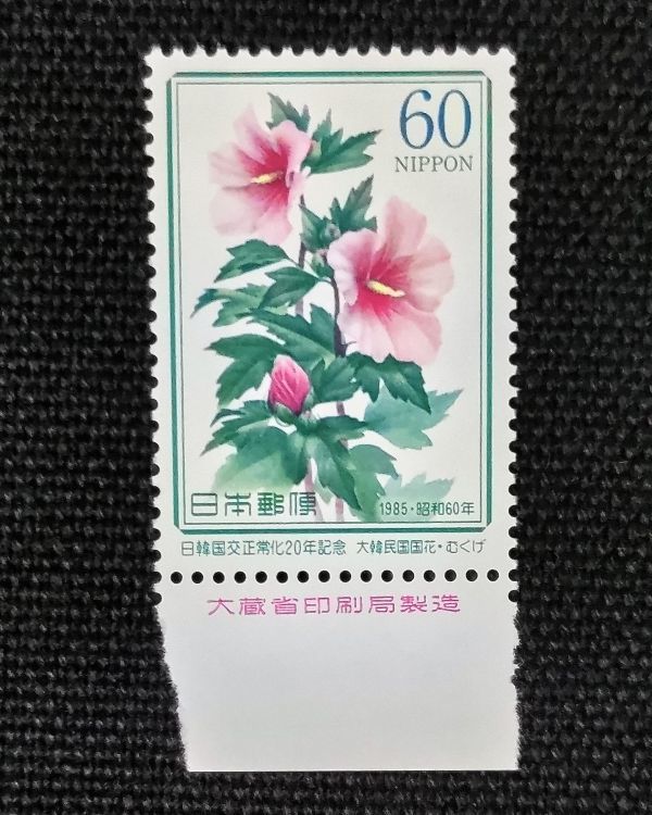 - [23082701]【日韓国交正常化20年記念】単片 銘版付「大韓民国国花・むくげ」60円 1985年発行 美品*