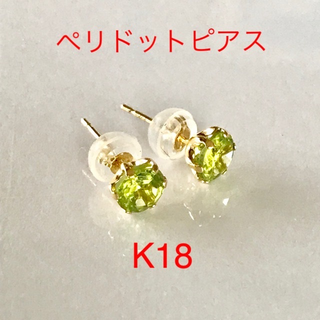 - ペリドットピアス K18ピアス 8月誕生日 大粒ピアス送料無料