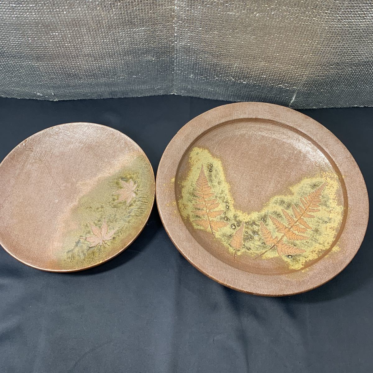 - ★大阪堺市/引き取り可★大皿 2枚セット 直径39cm&直径30cm 紅葉 葉 模様 柄 陶器 飾り インテリア オブジェ 置物★