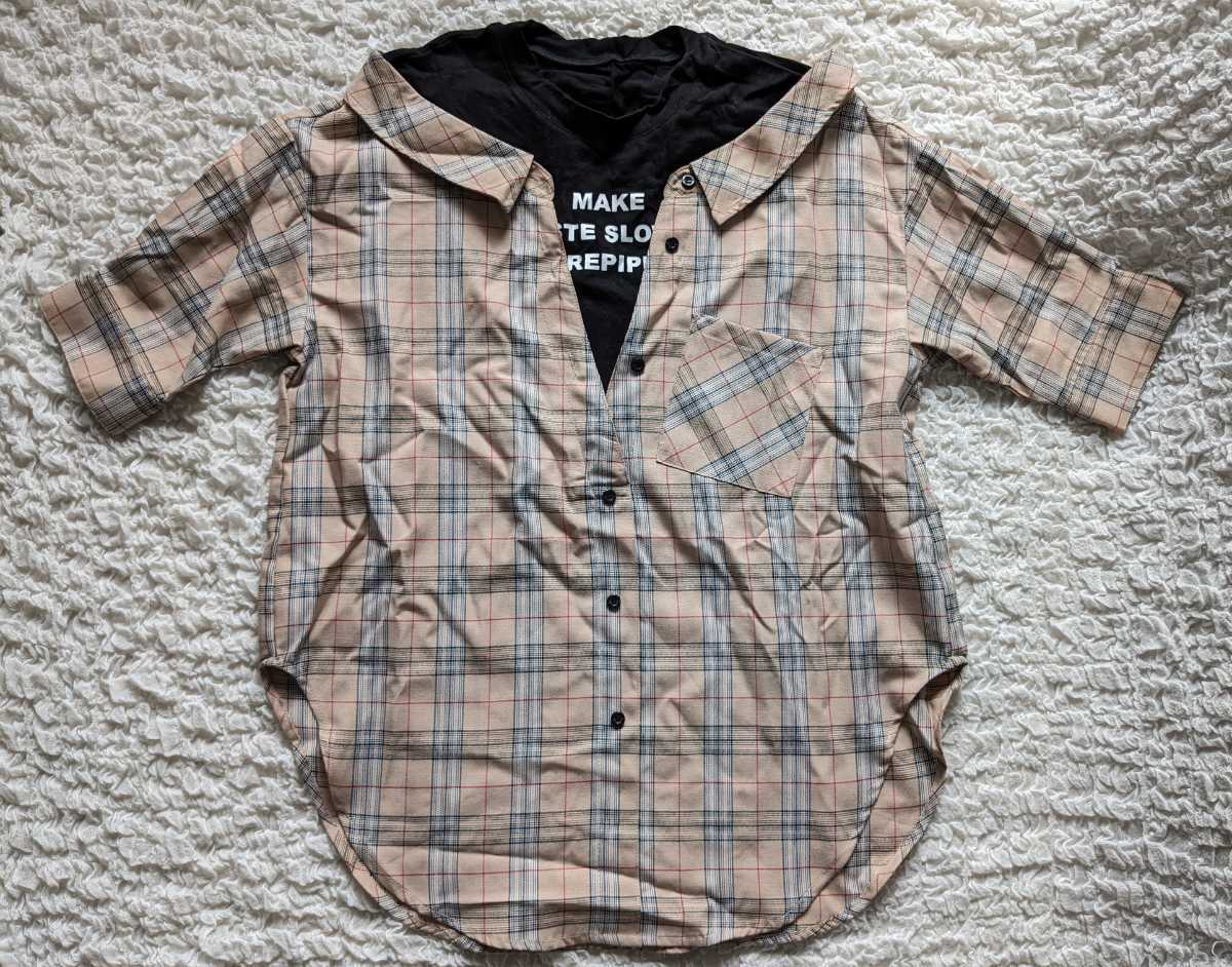 - repipi armario レピピアルマリオ★重ね着風 肩落ち チェックシャツ S★美品