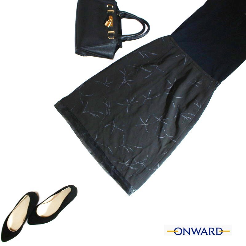 - 美品 オンワード樫山 ■ 上品 ミセス 綺麗め ポリエステル 柄 プリント Aライン タイトスカート 7号 ダークグレー フォーマル
