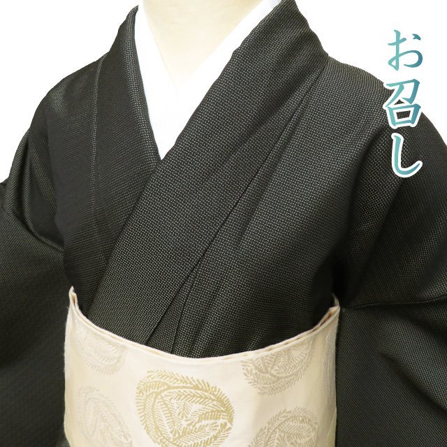 > お召し 御召 着物 中古 正絹 袷 カジュアル 黒色 身丈160cm 裄66.5cm M きもの北條 A919-5