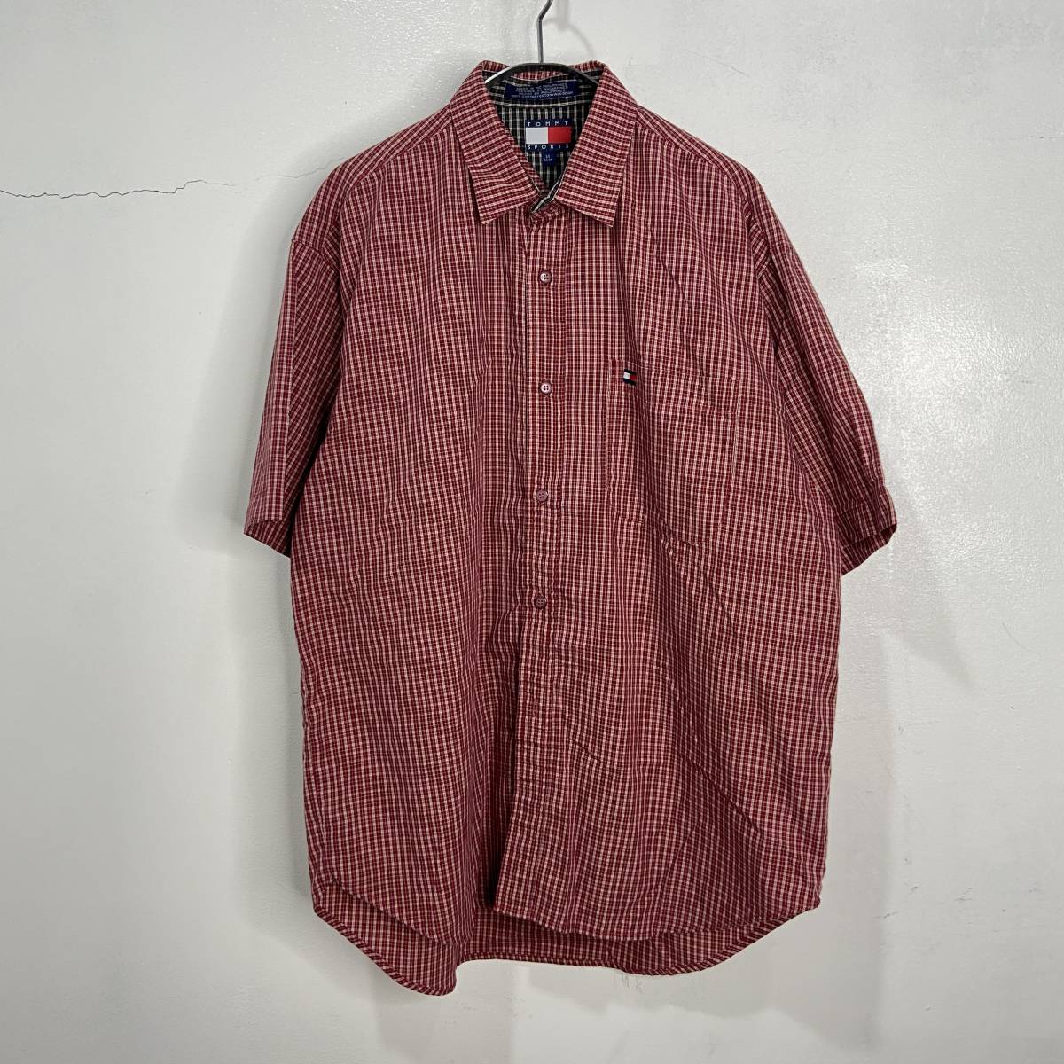 - 送料無料☆TOMMY HILFIGER☆TOMMY SPORTS☆トミーヒルフィガー☆チェック柄半袖シャツ☆レッド系☆M☆I23