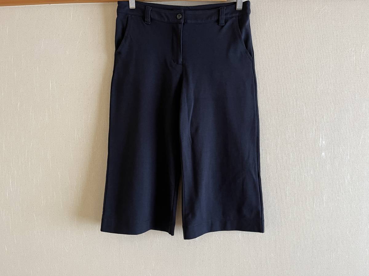 > ◆美品 MUJI 無印良品 綿混 ストレッチ ポンチ ワイドパンツ ネイビー クロップド 4990円 洗濯済み 匿名発送