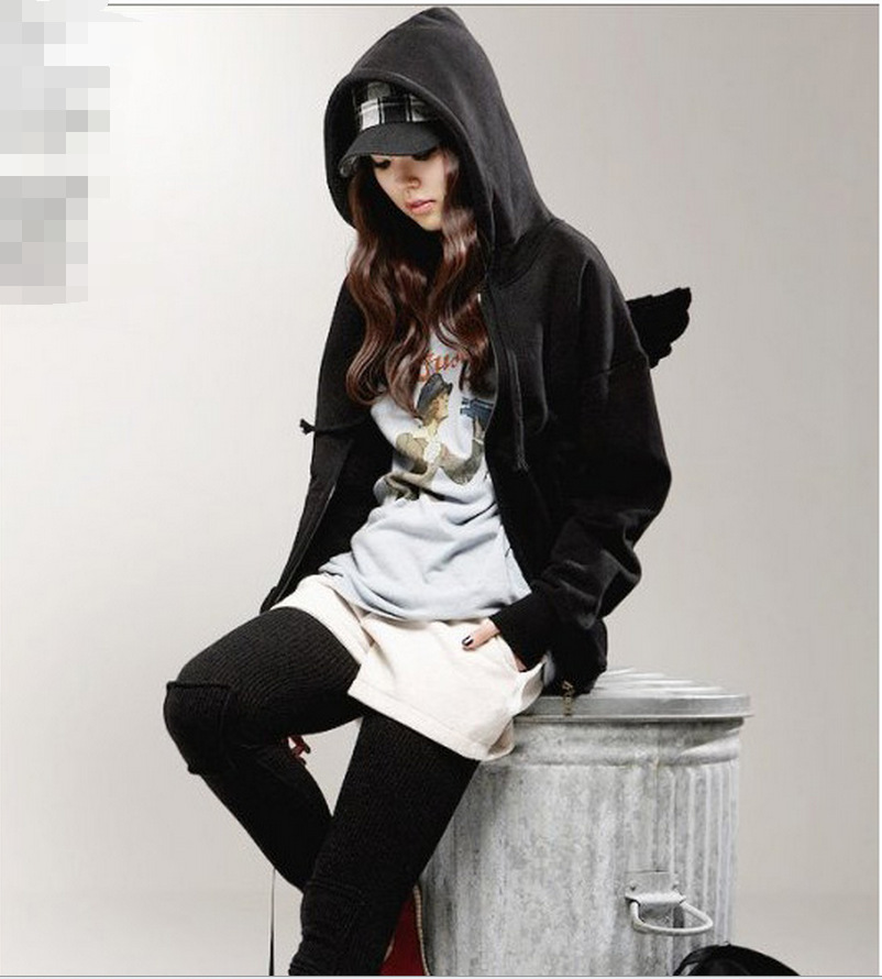 - ★☆18-1.天使 の 羽付き パーカー 可愛い 無地 裏起毛 黒 M☆★