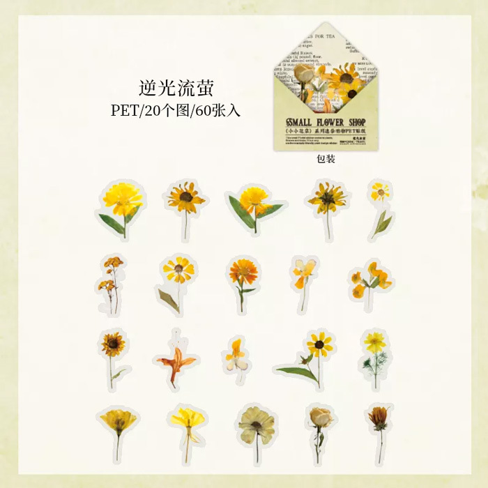 - 60枚 シール 花 透明 防水 おしゃれ アンティーク ビンテージ デコステッカー アンティーク調 コラージュ レトロ 1077-4