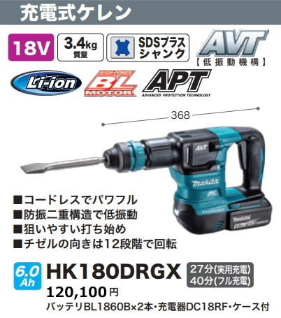 - マキタ 充電式ケレン HK180DRGX 18V 6.0Ah 新品