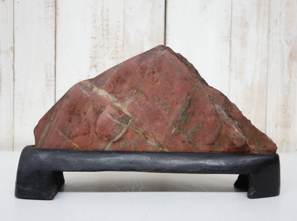 > 天然石 原石 レトロ *大型鑑賞石 朱色石 瑪瑙 アゲート*木製誂台座 *大型 3.87㎏ *鑑賞石 景石 飾石 盆石 ディスプレイ