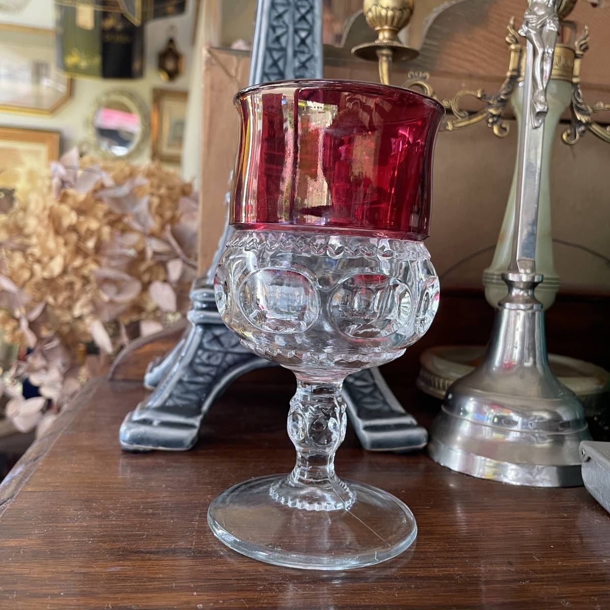 > 貴重品!50's〜60's アメリカアンティークグラス ワインゴブレット USAヴィンテージ食器/ヘーゼルアトラスfentonアールデコフェントン