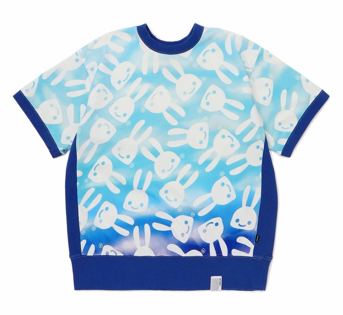 - 2023 限定品 CUNE『青空半袖スウェット』丸首 半袖 青 前後袖プリント 総柄 CUNEウサギ サイズ3・身幅約62cm※未試着品/未使用品/タグ付き