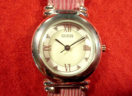 ◎ブランドGUESSのデザインです。風防(ガラス)が凸レンズとなっていますので小さい割には