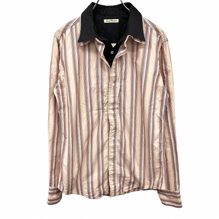 - ジャーナルスタンダード シャツ 長袖 レイヤードカラー ストライプ 綿100% M マルチカラー 赤茶×ピンク系×ベージュ×茶×白×黒 メンズ