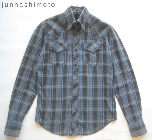 > 美品日本製!!ジュンハシモト jun hashimoto*細身シルエット チェック柄隠しボタンダウンウエスタンシャツ 2 実寸S~M
