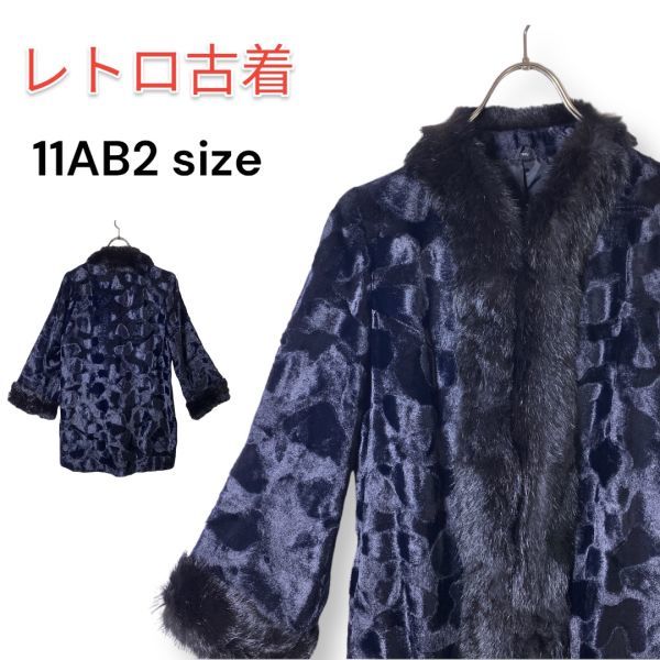 - 日本製 パイルレーヨン コート ラビットファー使用 黒 ブラック ゴージャス
