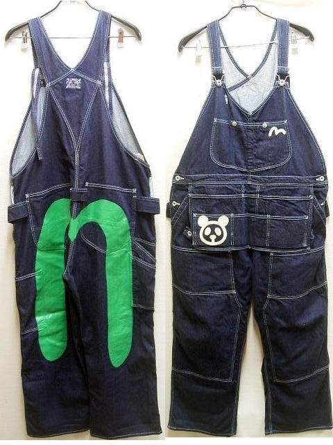 > ◇即決[W36]エヴィス 上野限定 パンダ ペイント 大黒 ペイント グリーン デニム ダブルニー オーバーオール パンツ■R74