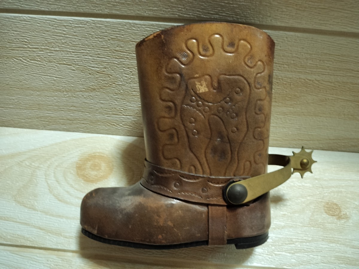 - 珍品!激レア!レトロ!皮製!ブーツ!靴!ビンテージ!小物入れ!お洒落!可愛い!インテリア!ステ
