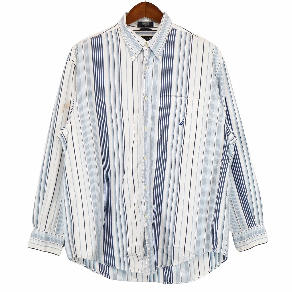 - NAUTICA ノーティカ ストライプ 長袖シャツ ボタンダウン ブルー (メンズ L) 中古 古着 O4742