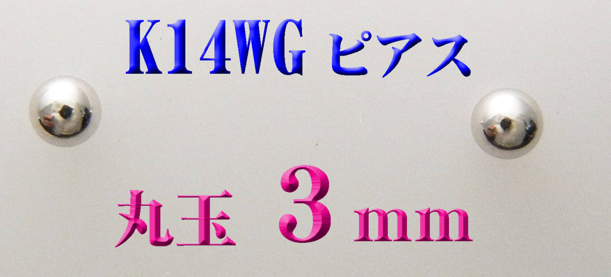 > 特別セール!K14WG 14金ホワイトゴールド 丸玉3mm スタッドピアス 新品 ボールピアス 本製