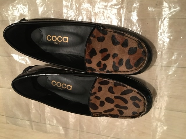 - UESDコカヒョウ柄ぺったんこ靴・黒×ヒョウ茶・2cmレディース)