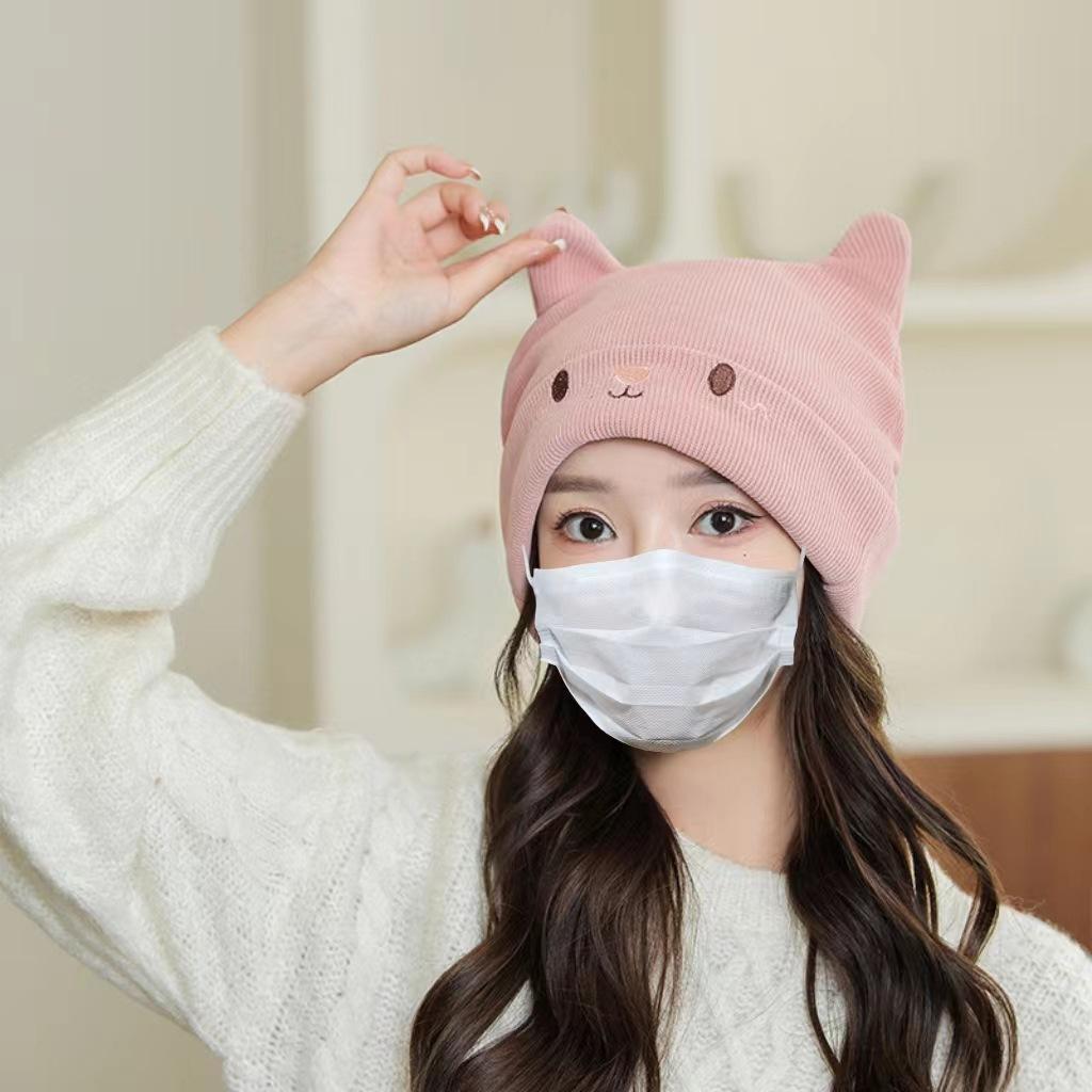 - 【ピンク】うさぎ形ニット キャップ レディース秋冬可愛い