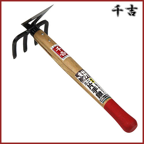 - 千吉 ミニ片手鍬 4本レーキ型 穴掘り用 土起こし用 園芸用品