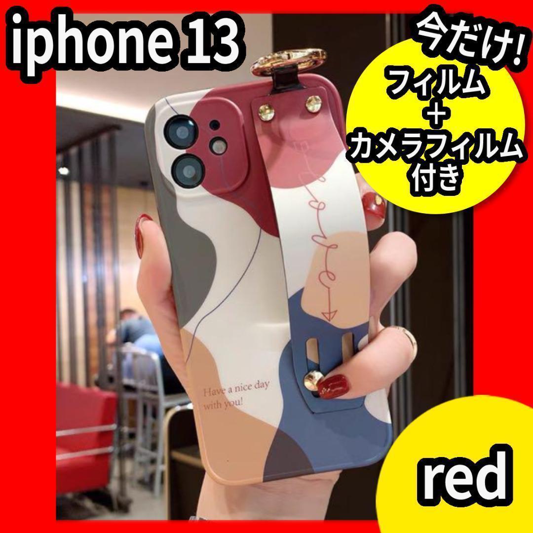 > iPhone14ケース☆赤★スマホ ショルダーベルト付き★オシャレカバー★韓国