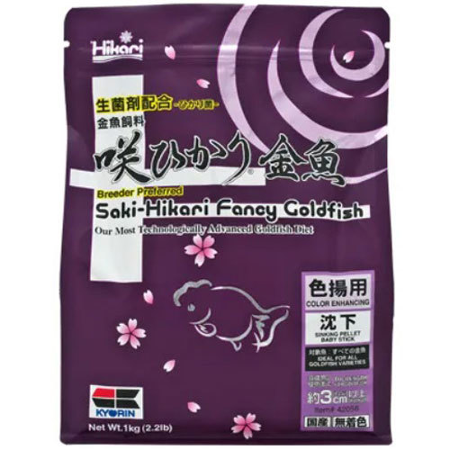 咲ひかり金魚は、金魚の腸内で体調を改善・維持する生菌剤、ひかり菌(バチルス菌の一種)を生きたまま配合した画期的な金魚専用飼料です。 【特長】◆金魚の色揚げに高い効果を示すカロチノイド(アスタキサンチン)を強化配合。さらにスピルリナを最適な割合でブレンドすることにより、体表の赤地をより鮮明にします。◆白地の黄ばみを抑えるため、キョーリン独自の研究から立証された黄ばみ抑制成分を強化配合しました。◆ビタミンEとビタミンCを豊富に配合し、水質悪化などから受けるストレスを緩和します。◆良消化、良成長を実現する栄養バランスのとれた配合により、効率の良い成長が望めます。◆「ひかり菌」が腸内で活性化して餌の消化吸収を助けるとともに、排泄物の分解を促進し、水質悪化を抑えます。ひかり菌とは・・・ひかり菌はバチルス菌の一種で、金魚の腸内に入ると優先種となり、環境を整え悪玉菌などの繁殖を防ぐ効果があります。さらに、飼料の消化吸収を促進する他、排泄された糞の分解を助けますので、水質悪化を抑制することも出来ます。※ひかり菌は、腸内に残留せずに排出されてしまう一過性菌です。咲ひかりシリーズは、継続してあたえることで生菌剤(ひかり菌)の効果を発揮しますので、主食として継続使用されることをお勧めします。 【対象魚】すべての金魚・当歳魚(約3cm)~成魚 【内容量】 1kg 【発売元】 株式会社キョーリン