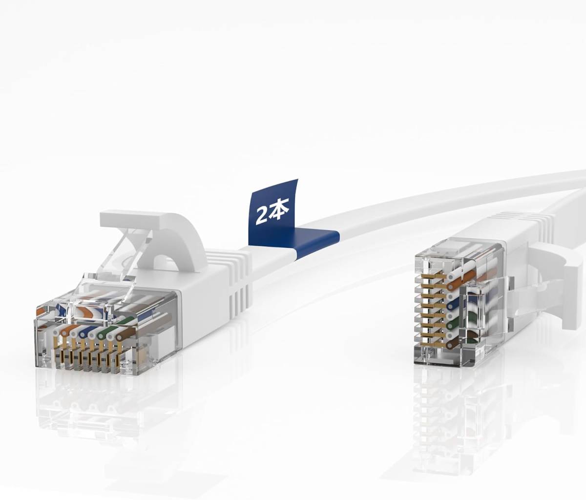 - HiFind LANケーブル CAT6準拠 ウルトラフラットケーブル RJ45コネクタ ギガビット 爪折れ防止 柔らかい ホワイト ルーター 3M 2本
