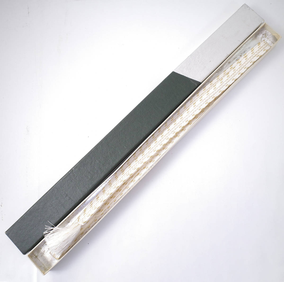 - 〇refle【帯締め】 組紐 くみ紐 平組 白地 金色 ゴールド ライン 箱入り 未使用? [①]