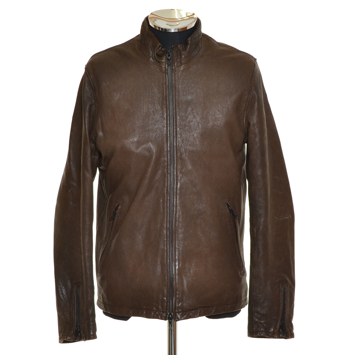 > 〇475213 nano universe ナノユニバース ○レザージャケット ライダースジャケット サイズM メンズ ブラウン
