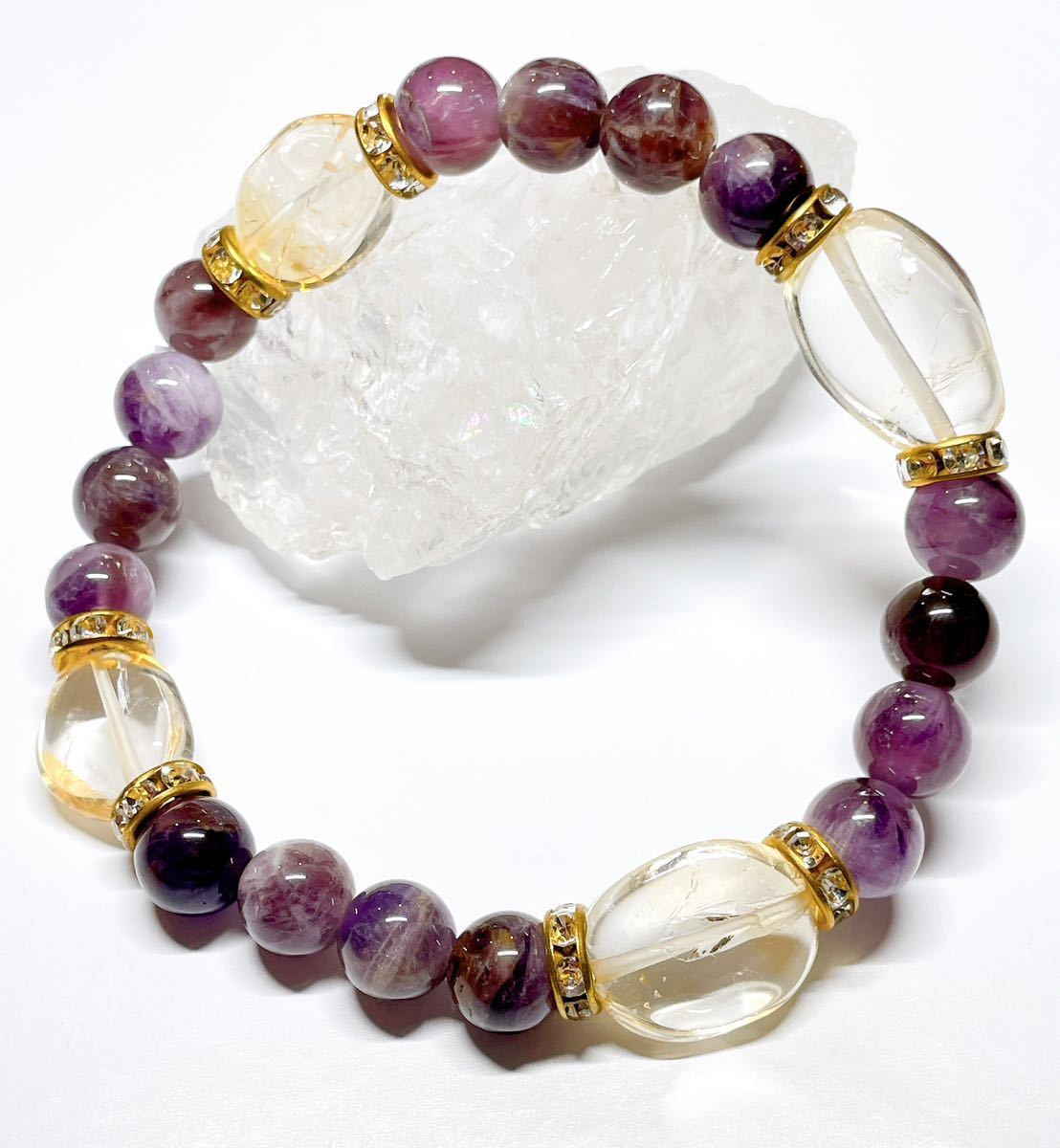 - 天然石ブレスレット★17㎝★アメジスト★シトリン★パワーストーン★送料無料★巾着袋付き