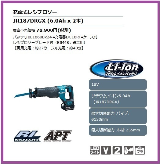 - マキタ 18V 充電式レシプロソー JR187DRGX [6.0Ah] ■安心のマキタ純正/新品/未使用■